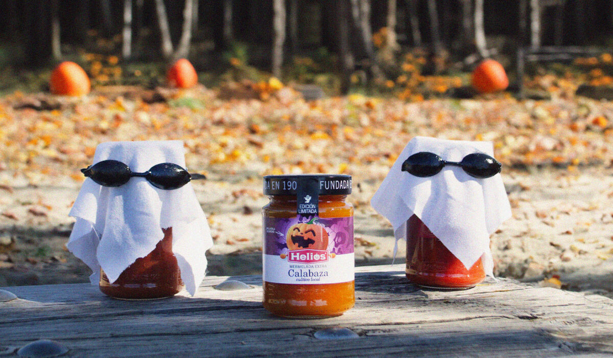 Pero vayamos a lo que nos interesa: Halloween. Y más concretamente a una nueva forma de disfrutar de la calabaza: con la nueva mermelada Helios que combina lo mejor de esta fruta de cultivo local con un toque de canela. Sácale todo el jugo a la fiesta misteriosa elaborando varios dulces originales. Por ejemplo, unos muffins de calabaza. O, si lo prefieres, unas galletas para las que encontrarás aquí la receta. O este bizcocho de calabaza. Puedes ir combinando un bocado de alguno de esos manjares con otras “monstruosidades” como “brownies fantasmagóricos” con confitura de fresa o “dedos de bruja” con salsa de tomate.
