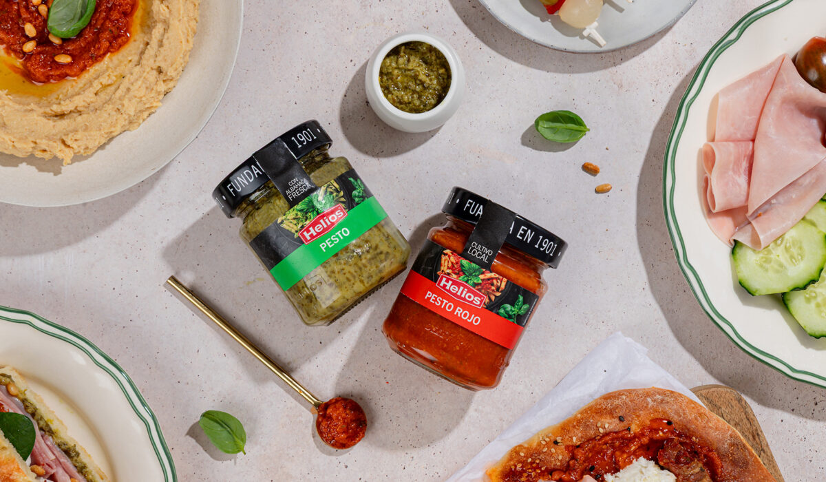 Ha llegado el momento de que conozcas nuestras nuevas salsas de pesto rojo y verde. Dos novedades que Helios te trae para esta primavera. Una de nuestras estaciones del año favoritas, y quizá la tuya también, por todo lo que representa. Como, por ejemplo, una oportunidad para hacer grandes planes, tanto fuera de casa como en la comodidad de nuestro hogar. Días más largos con mejores temperaturas que nos renuevan las ganas de pasarlo bien y gozar de las buenas cosas de la vida.